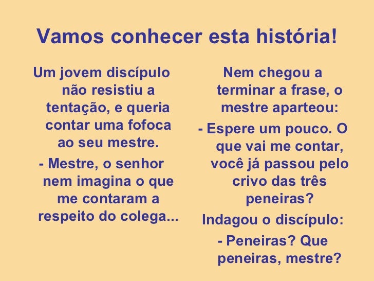 As Três Peneiras Um Rapaz Procurou Sócrates E Disse Lhe Que https://www.pinterest.com/pin/600878775254531032/