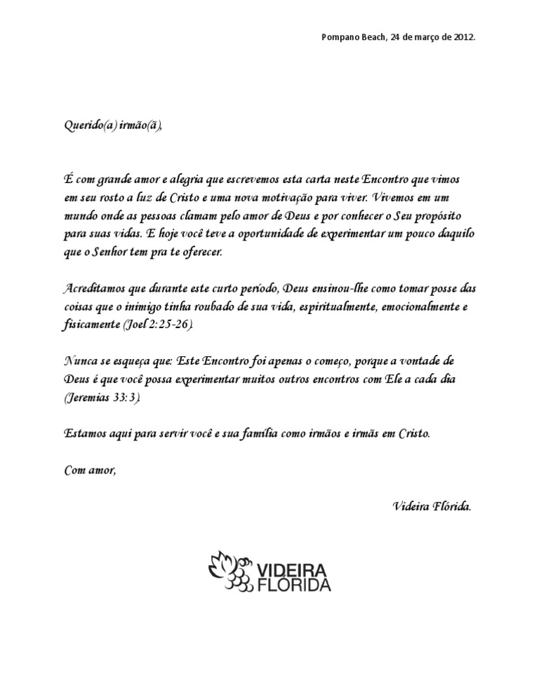 Encontrista Carta Para Encontro Com Deus