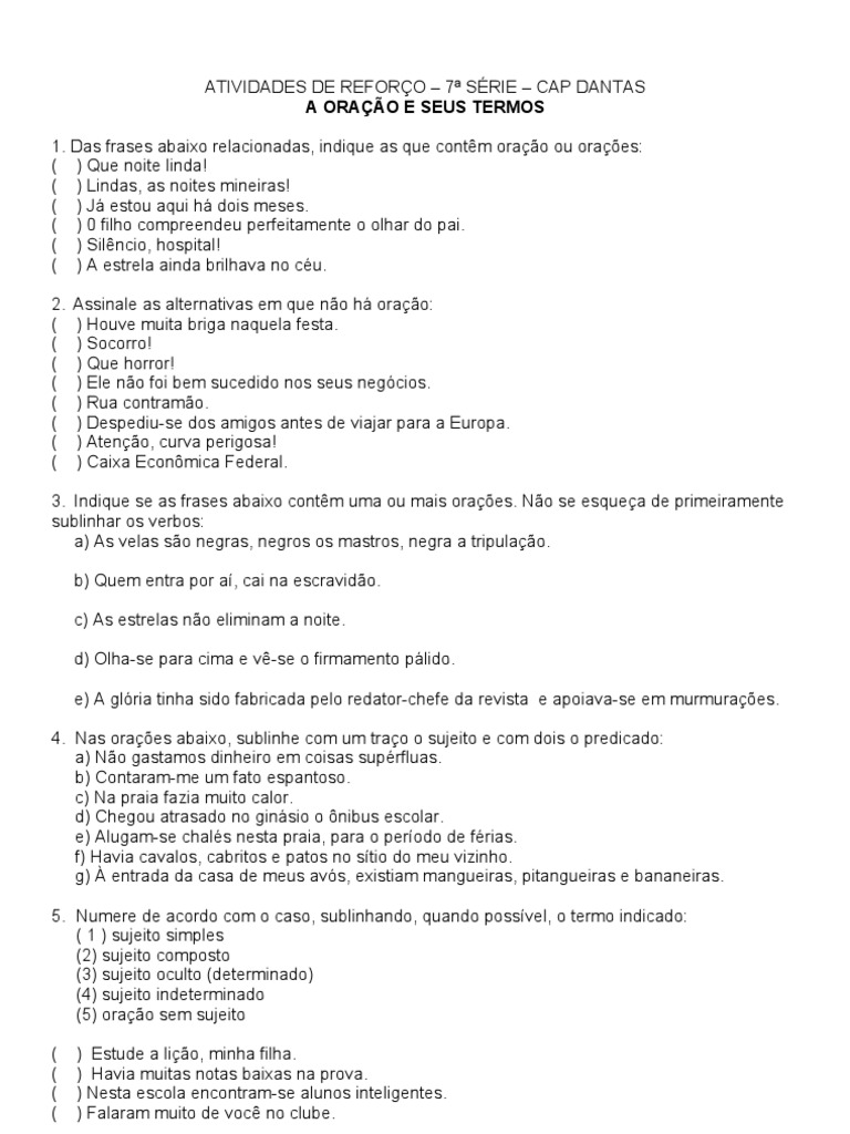 Exercicos Sujeito E Predicado 6ª Serie Assunto Gramática https://pt.scribd.com/doc/58766138/Exercicos-Sujeito-e-predicado-6%C2%AA-serie
